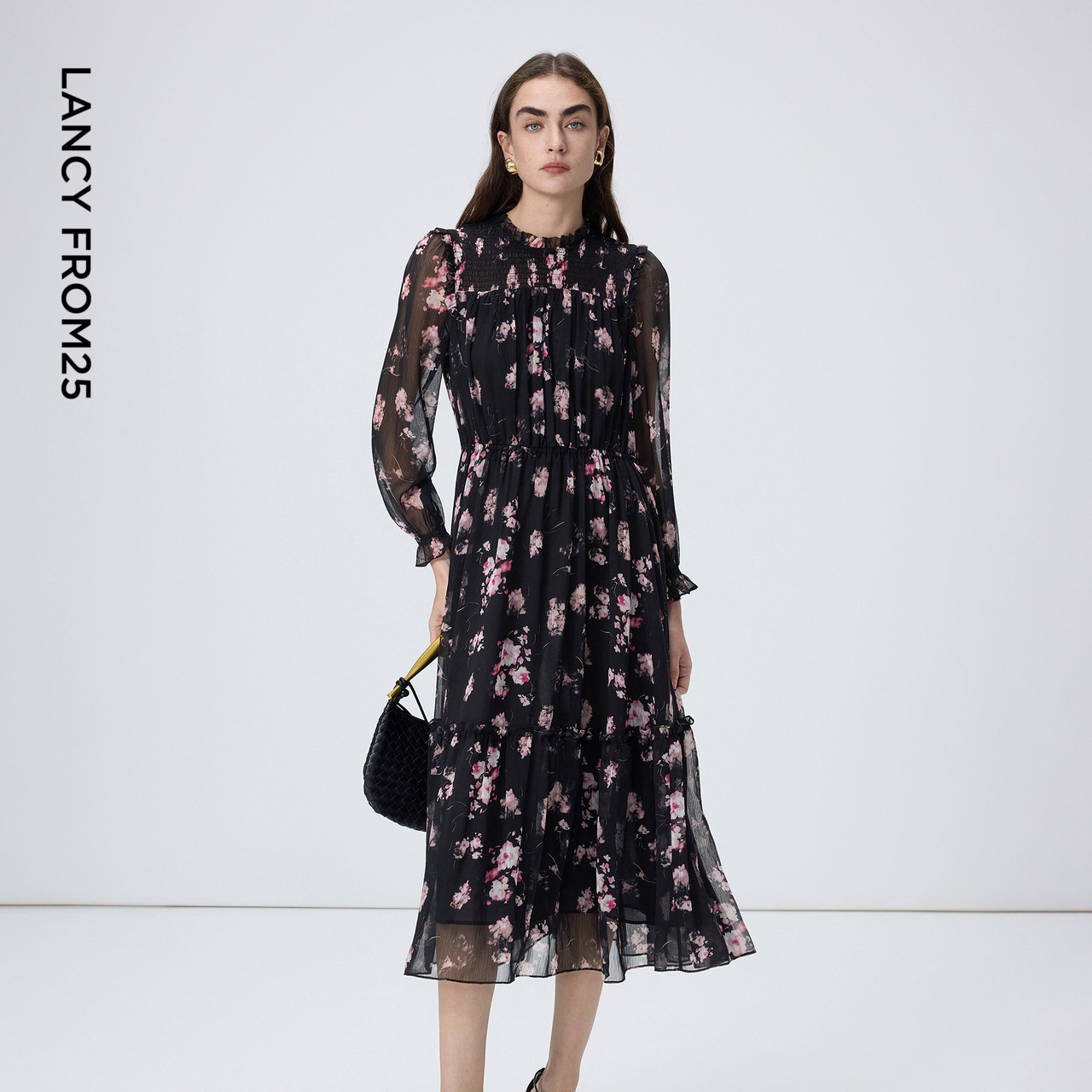 朗姿木耳边印花雪纺连衣裙法式碎花裙时尚气质通勤2026年春季新款