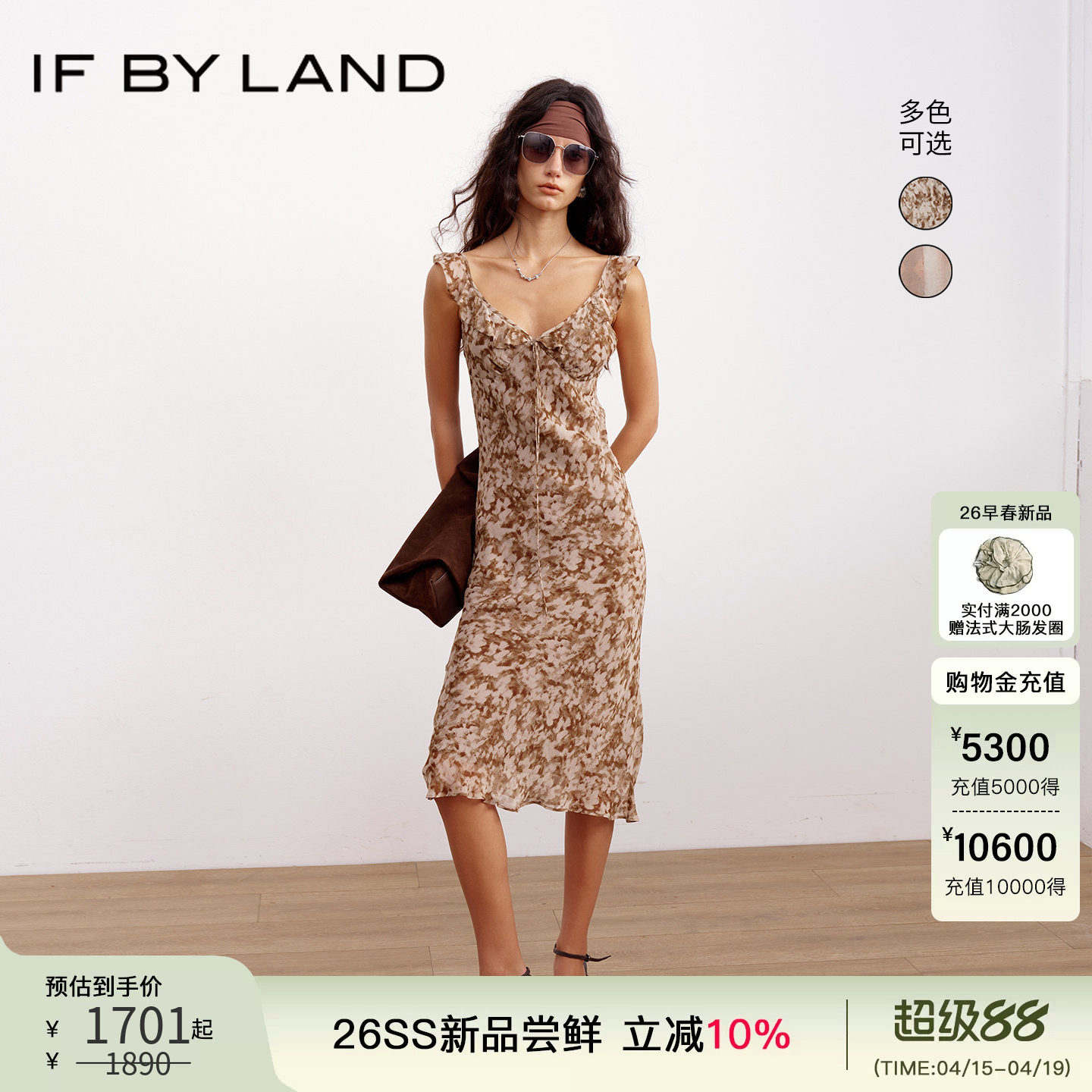 IF BY LAND 设计师品牌2026春夏新品多色印花雪纺吊带连衣裙
