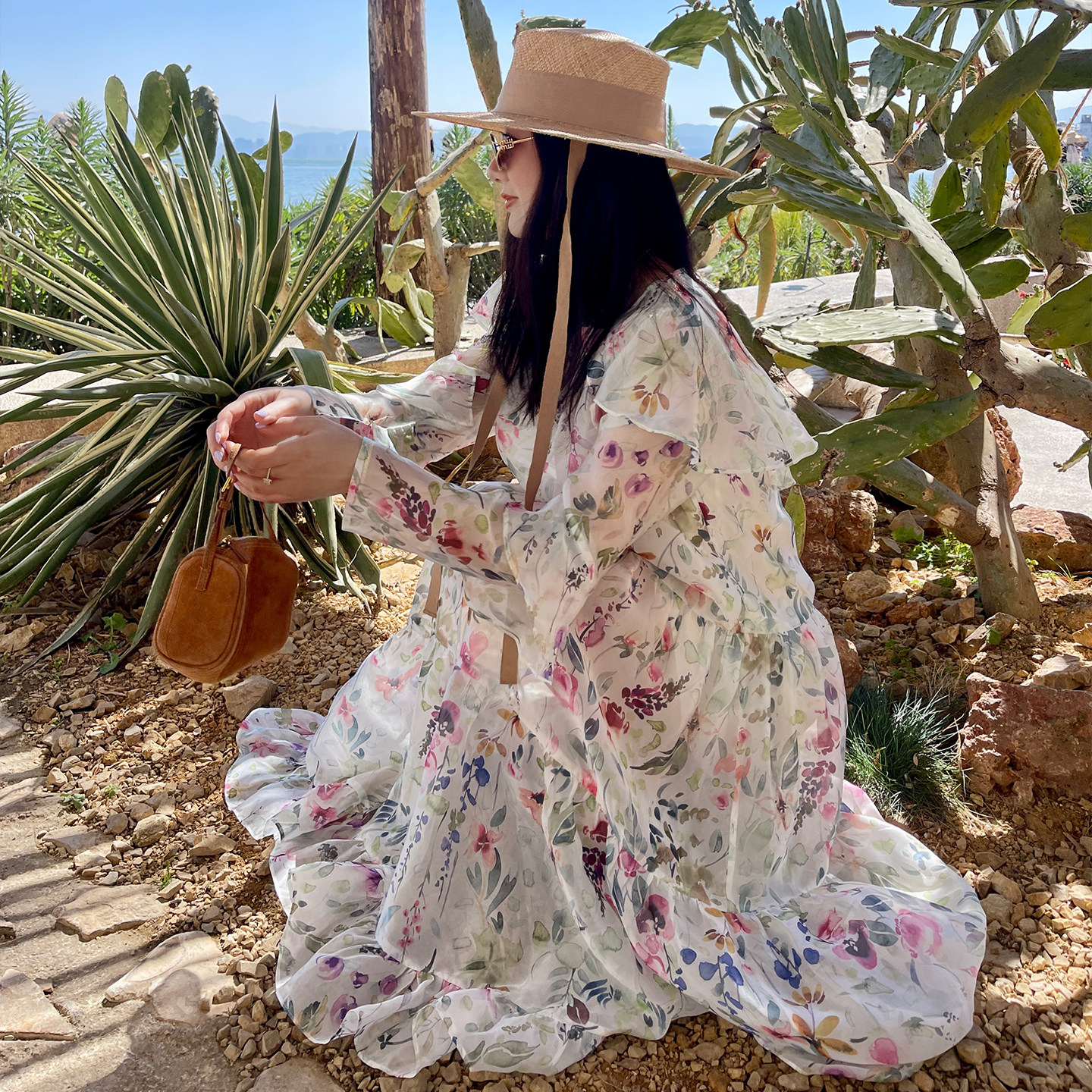 OFFIY-浪漫春意度假 飘逸温柔雪纺印花春夏高级好看新漂亮连衣裙