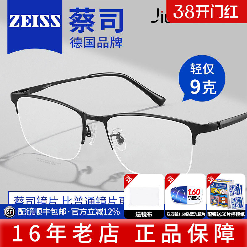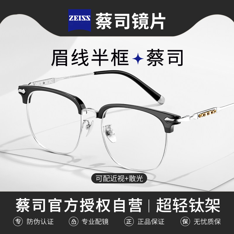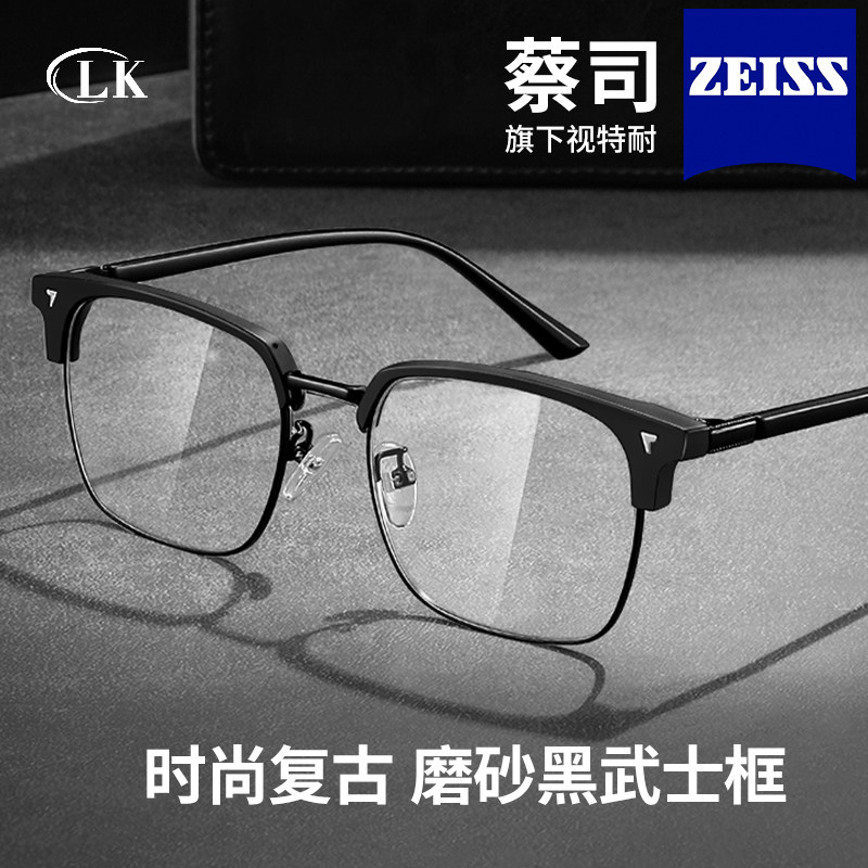 蔡司半框近视眼镜框男款黑色网上配镜可配度数镜片防蓝光变色眼睛