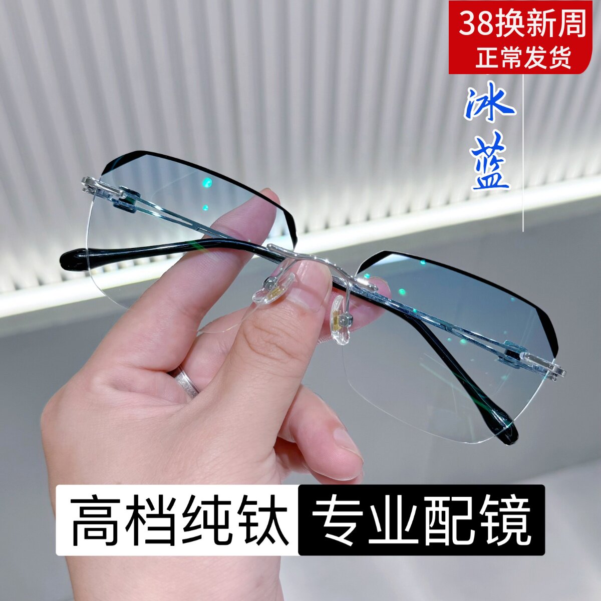 日本进口钛材防蓝光抗辐射近视眼镜女护眼无度数配平光眼睛男变色