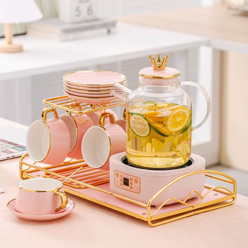 花茶杯水果茶壶套装下午茶茶具陶瓷轻奢茶杯玻璃茶具家用蜡烛加热