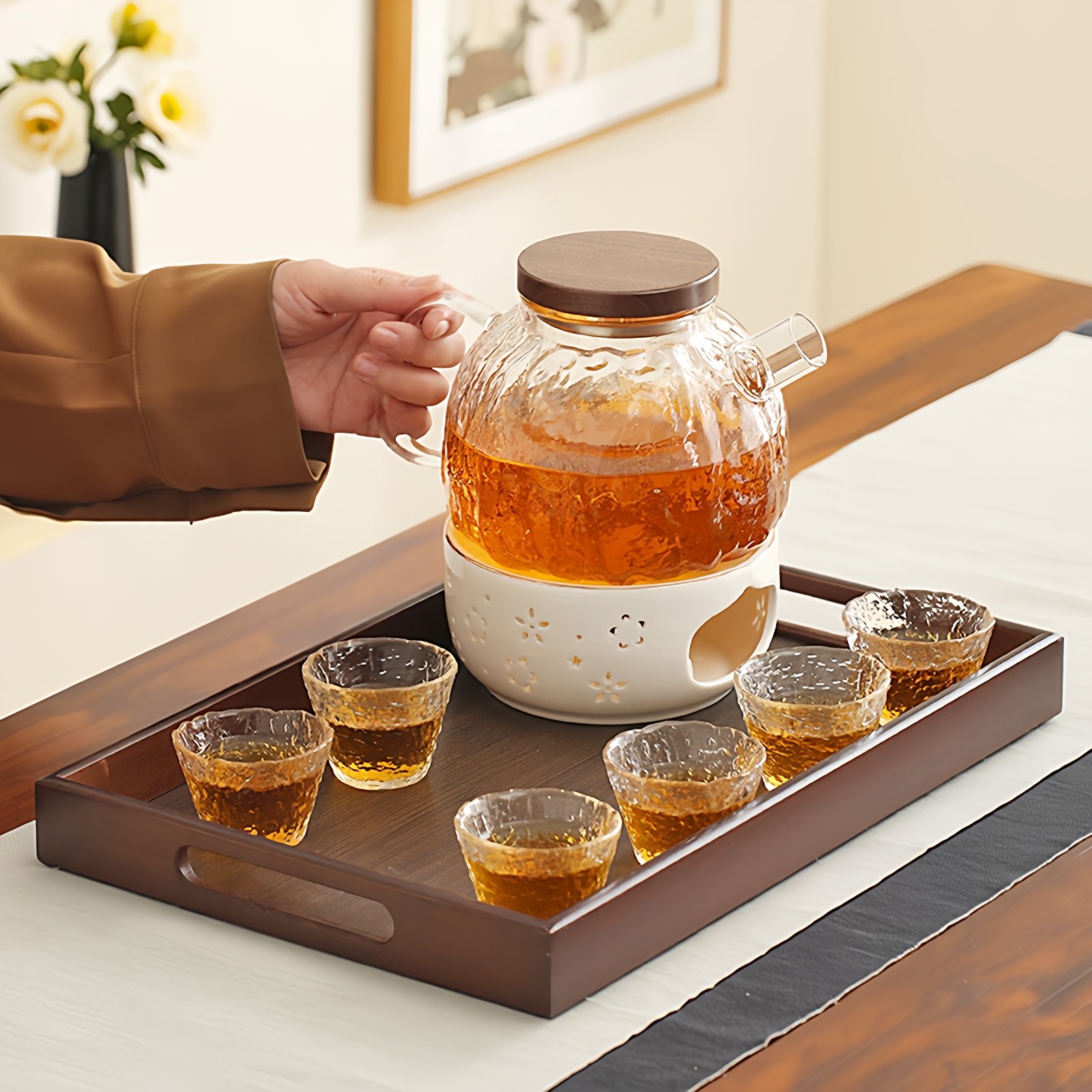 玻璃花茶壶套装蜡烛加热煮茶炉2025新款可明火围炉水果温茶炉底座