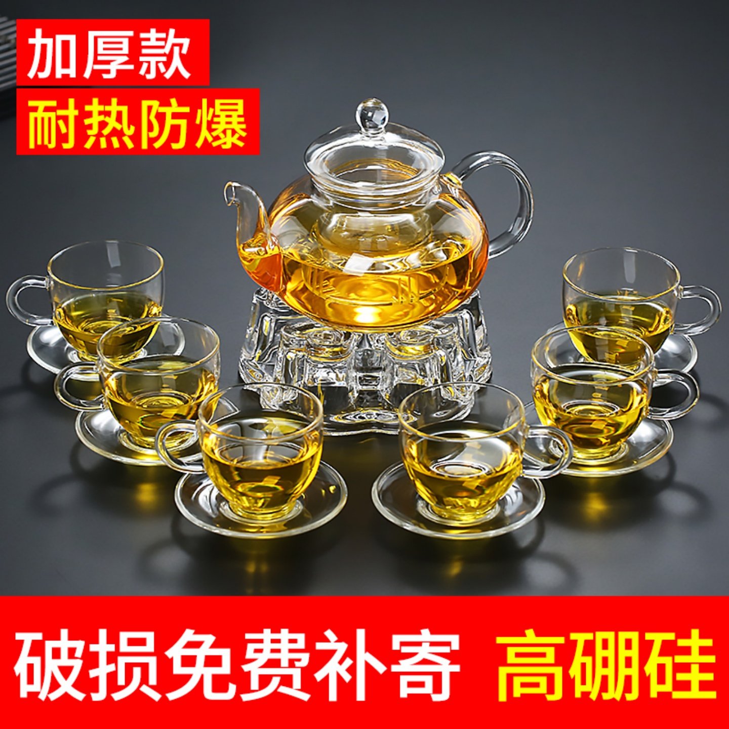 加厚玻璃耐高温茶具水果泡花草果茶壶花茶杯套装家用耐热可明火烧