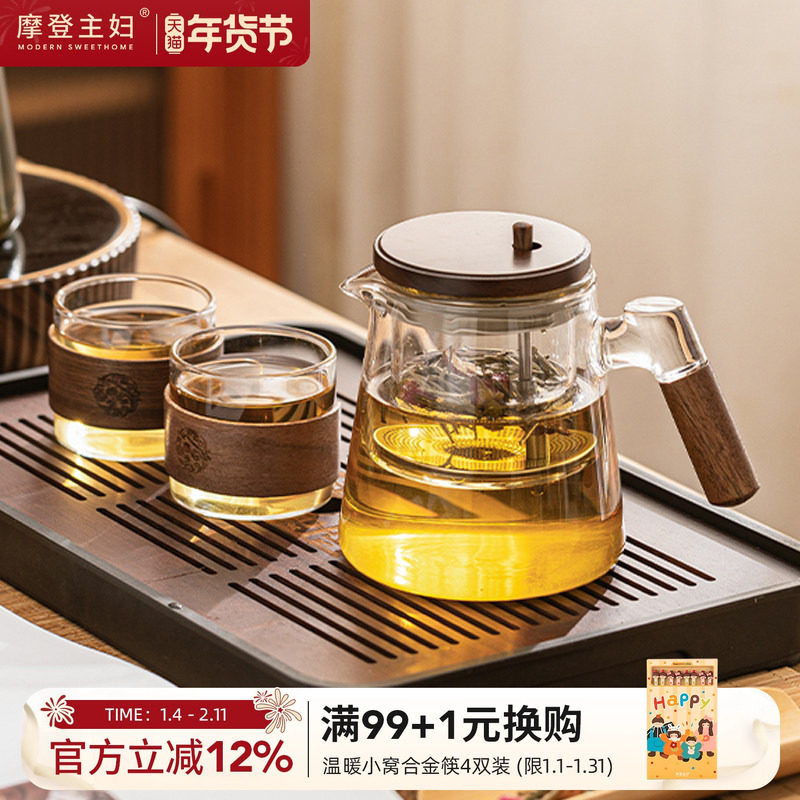 摩登主妇中式玻璃茶壶耐高温煮茶泡茶器具2026新款茶具套装小水壶