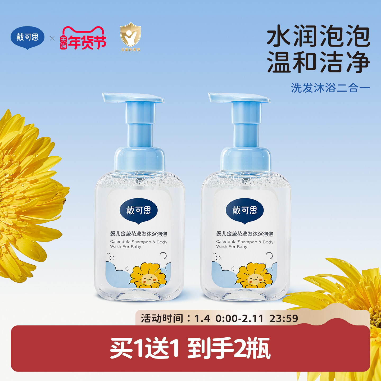 戴可思金盏花新生婴儿洗发沐浴二合一男女童洗护宝宝婴幼儿沐浴露
