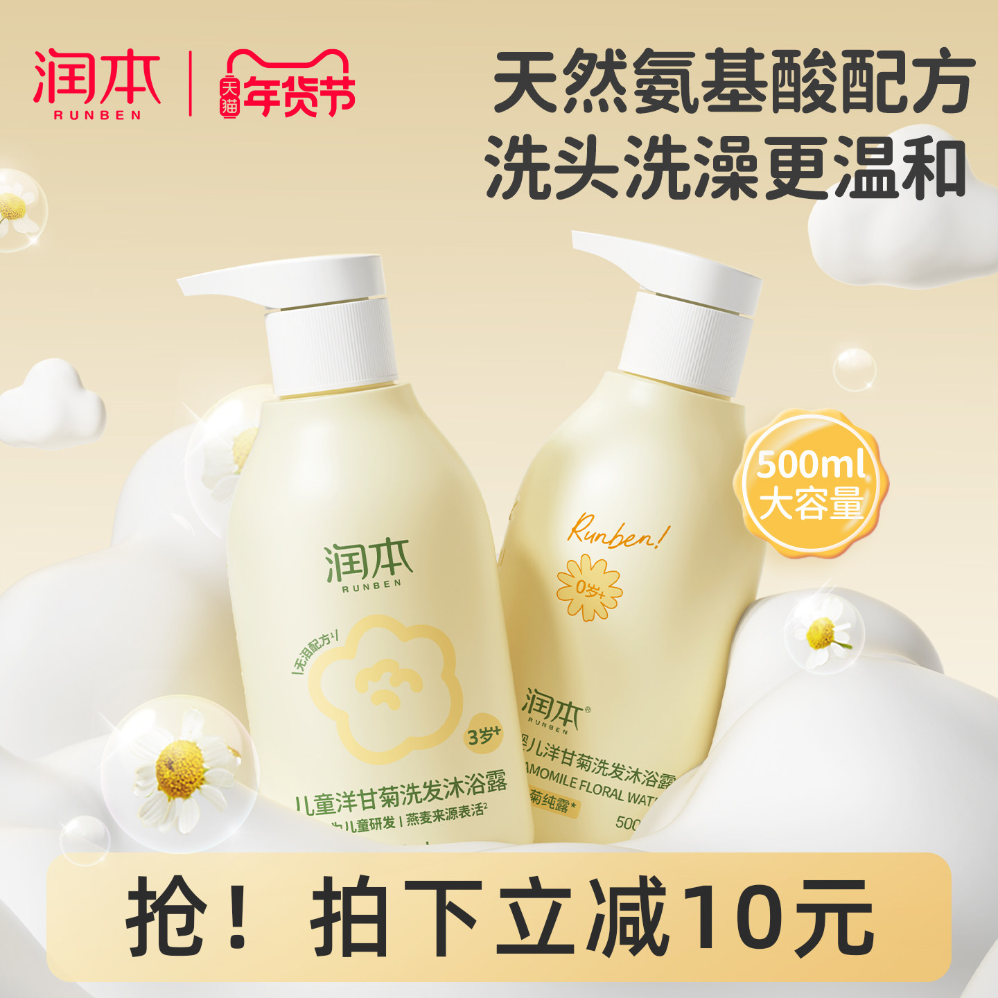 小浣熊氨基酸儿童专用洗发水沐浴露新生儿婴儿男女宝宝洗护二合一