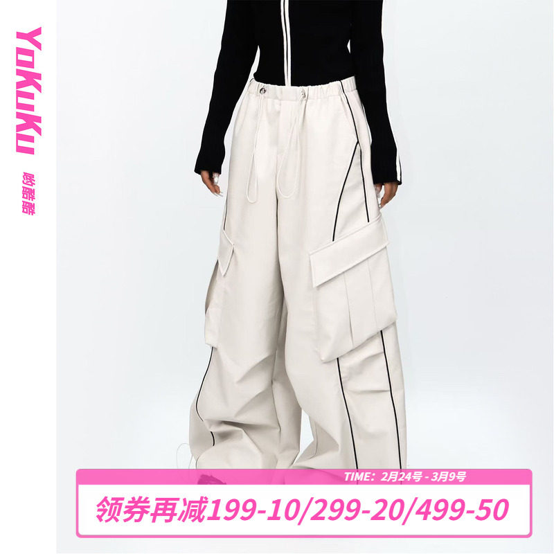 【99/件】EPTISON工装皮裤女2025秋季新款复古宽松直筒高腰休闲裤
