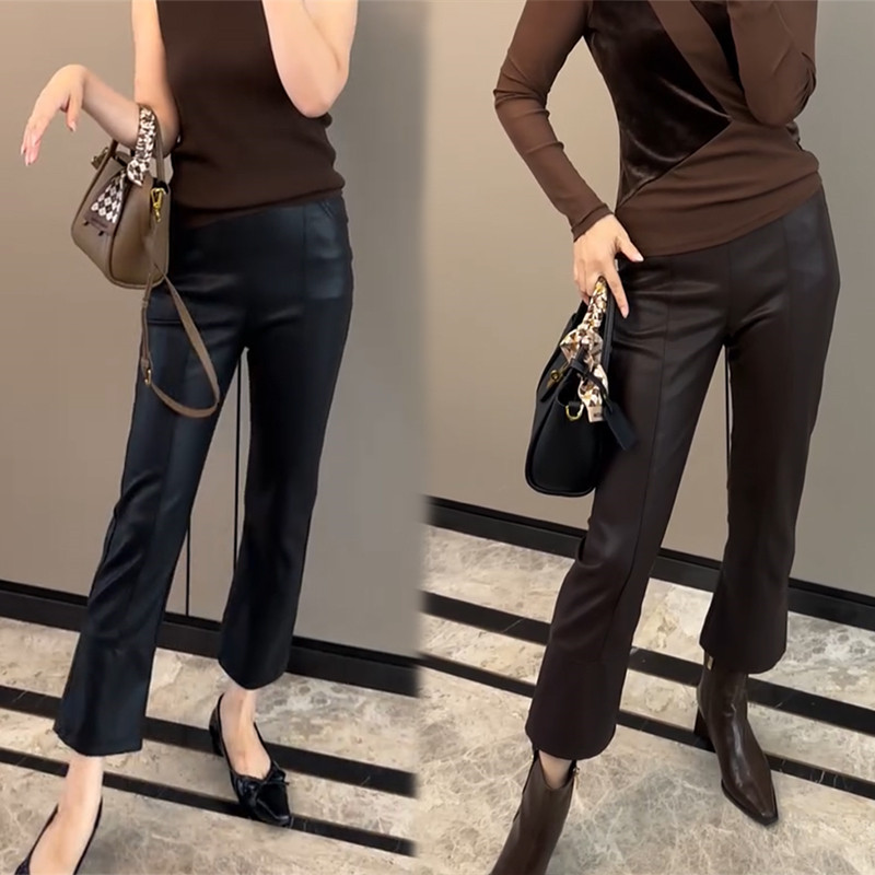 欧货秋冬高腰显瘦蛋白PU皮裤女宽松休闲百搭时尚九分直筒裤微喇裤