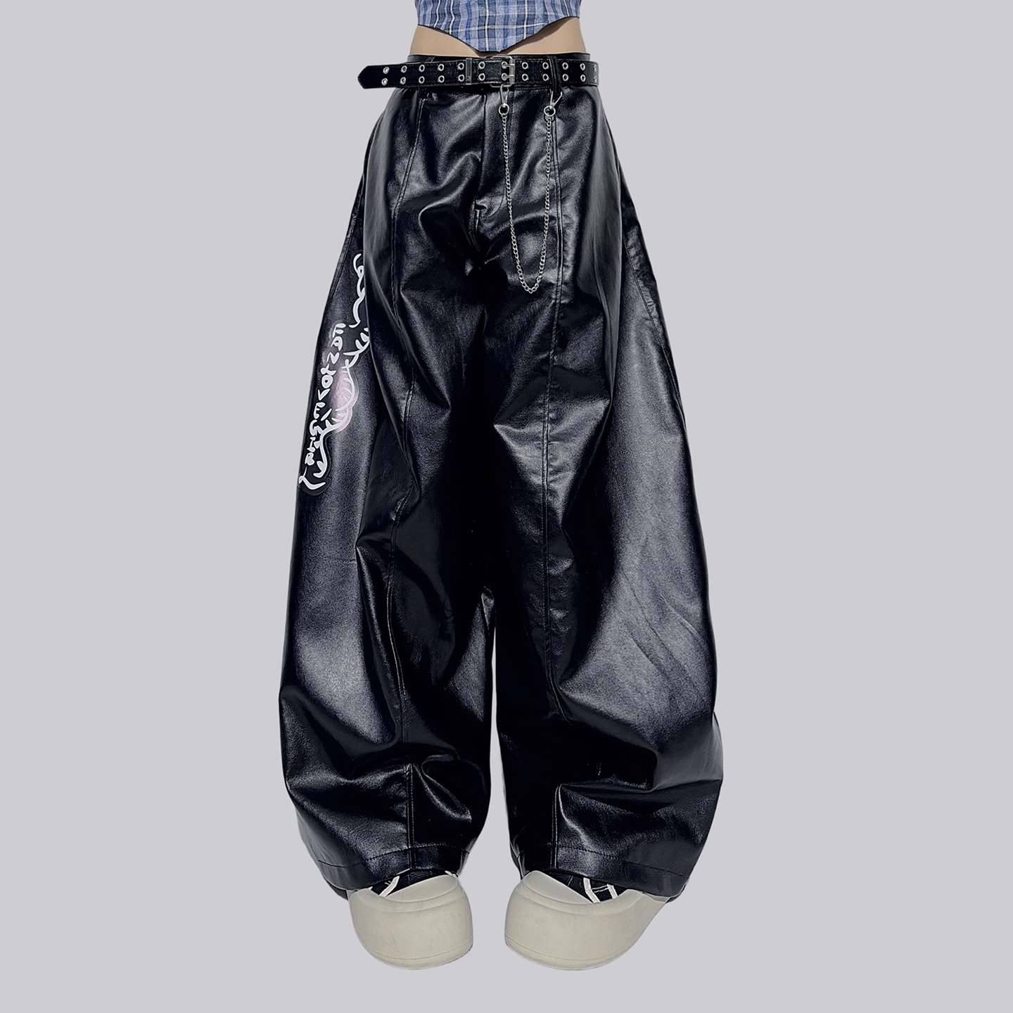 gagaopt小众甜酷粉色印染皮裤女宽松显瘦阔腿裤哑光高腰拖地裤冬