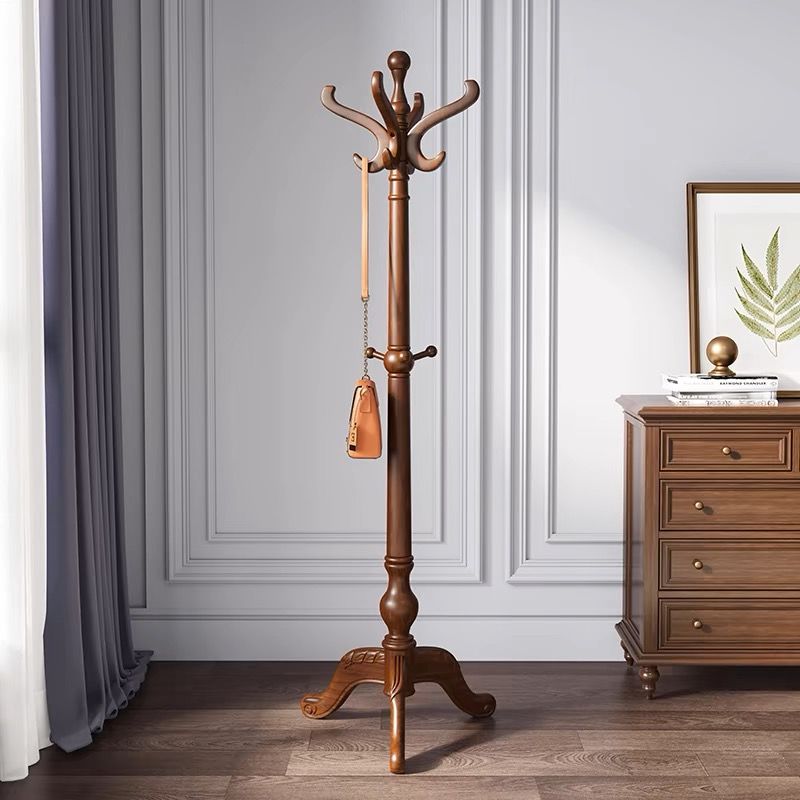美式纯实木衣帽架 欧式雕花落地衣架 门厅挂衣架 卧室多功能家用