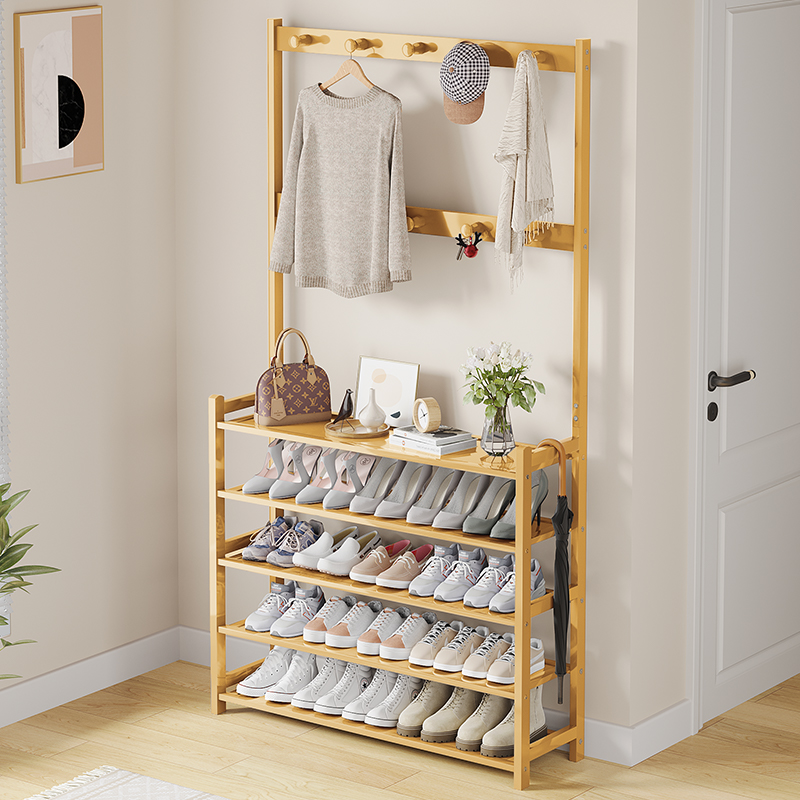 实木衣帽架落地置物架门厅衣架鞋架组合客厅卧室挂衣架储物换鞋凳