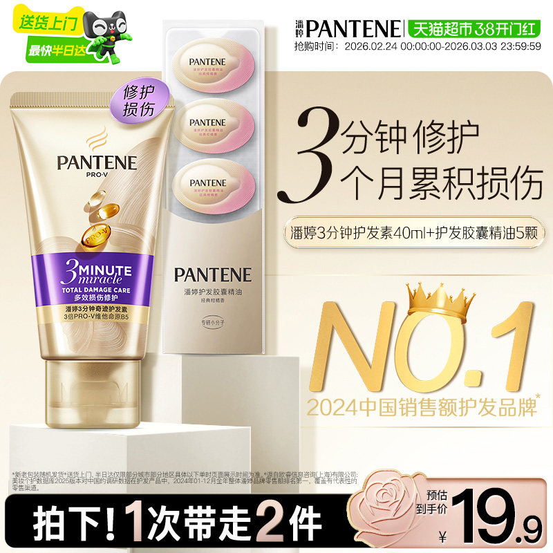潘婷护发精油胶囊0.7ml*5+3分钟奇迹护发素40ml免洗精华柔顺提亮