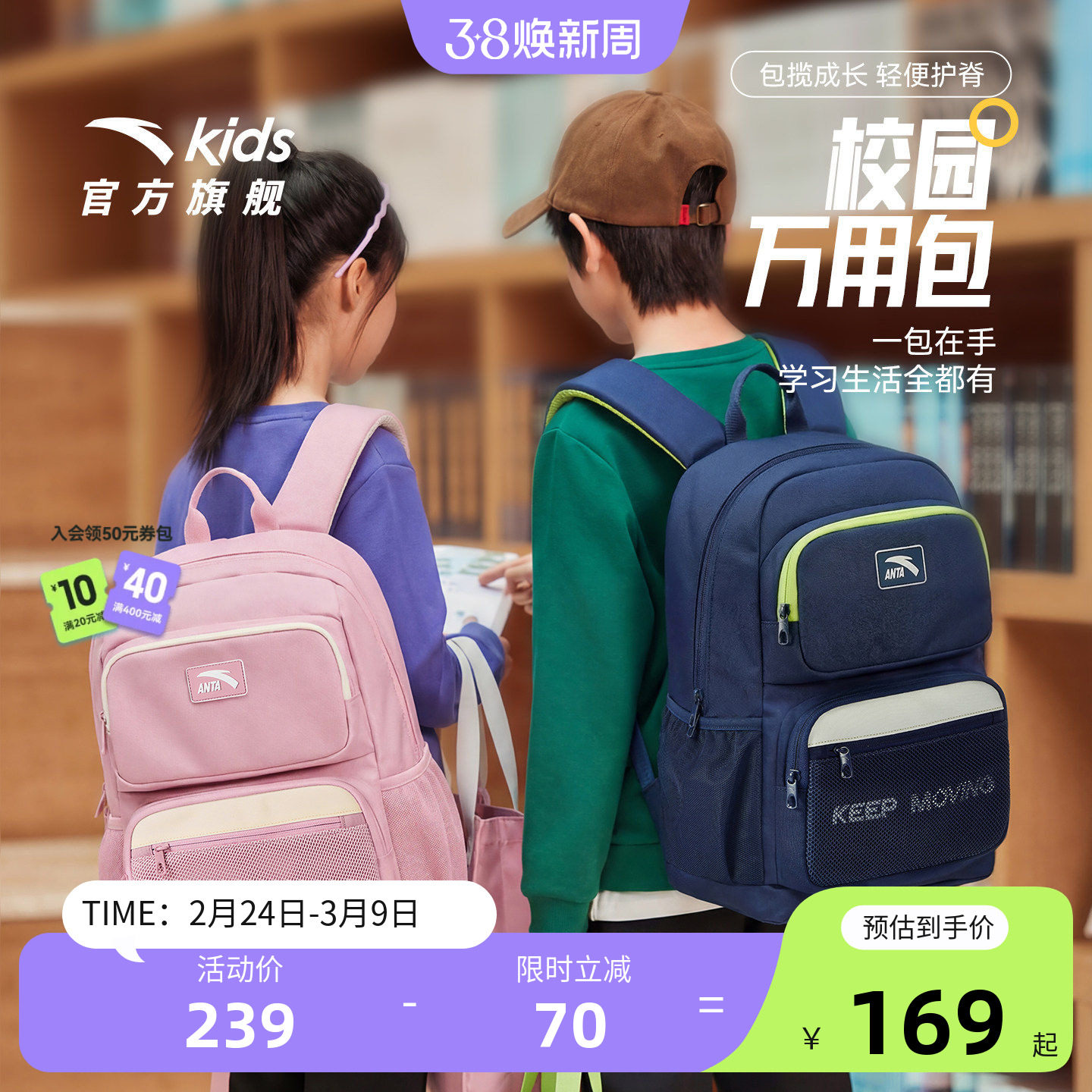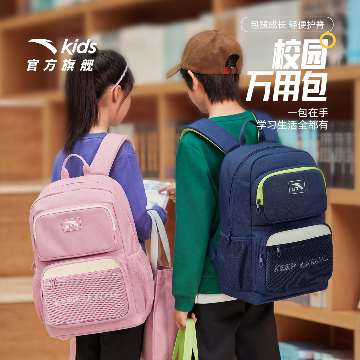 k姐推荐!安踏儿童双肩背包大容量小学生男3-6年级书包减负背包女