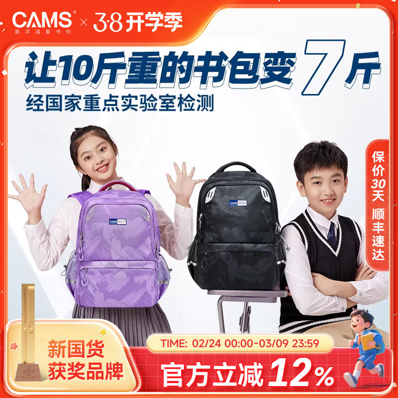 【3-6年级初中】CAMS悬浮减重书包中大童小学生三四到六减负护脊