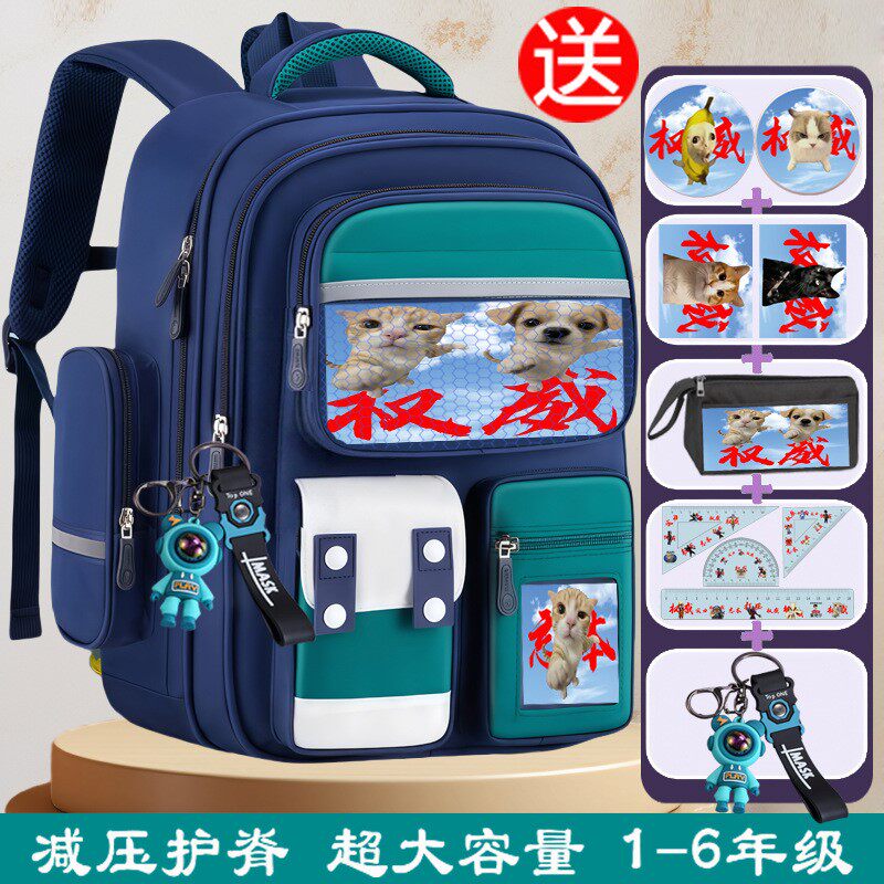 拳头小猫权威表情儿童3-6年级书包小学生1-3年级男女童大容量背包