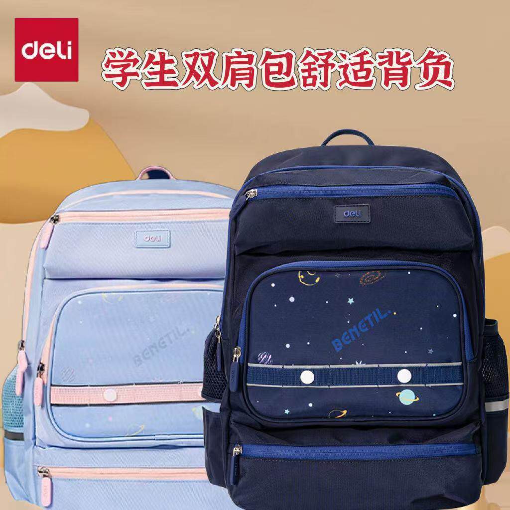 得力学生3-6年级书包男女孩休闲轻便儿童大容量学校双肩背包BB166