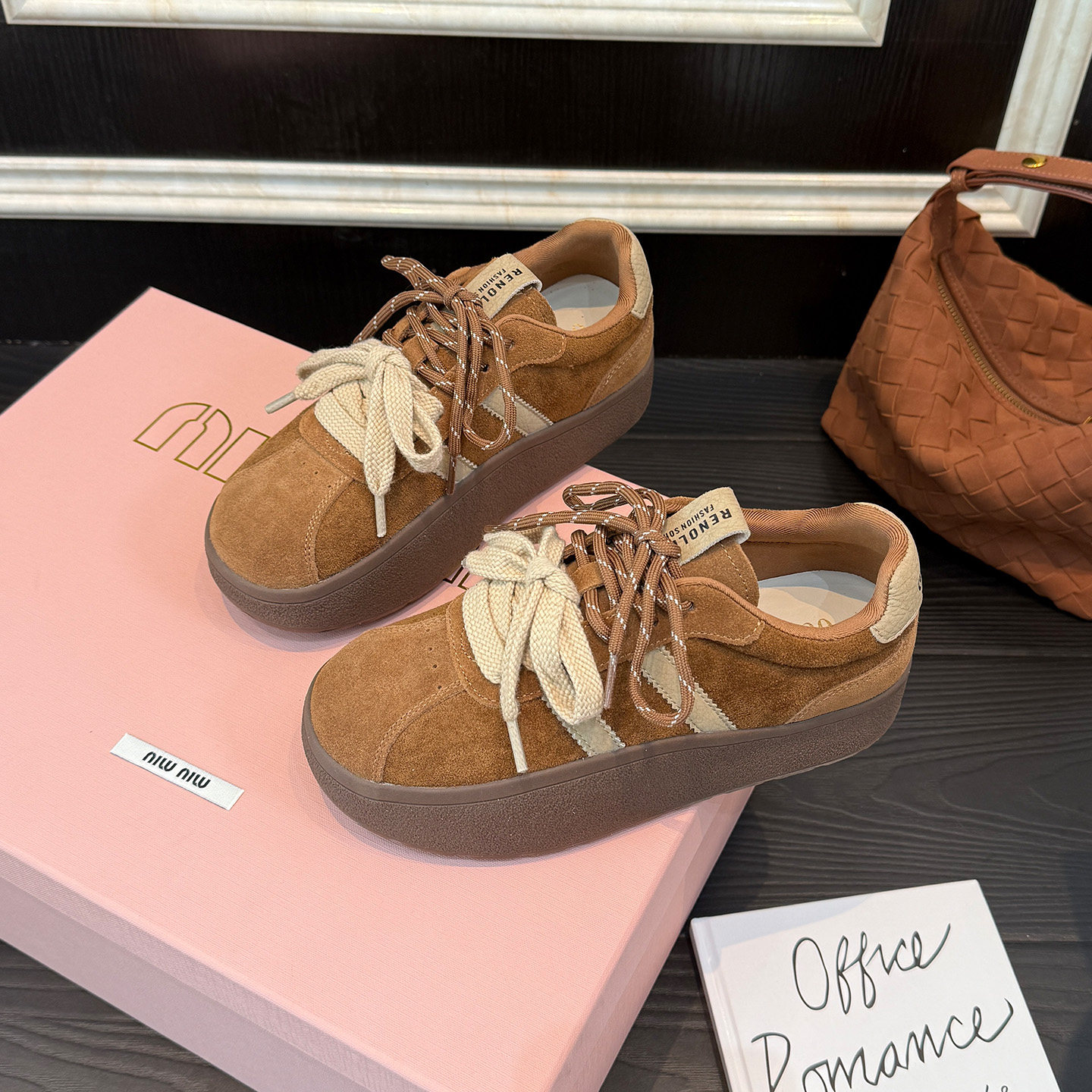 歌诗茵复古德训鞋女2026新款秋冬磨砂绒面厚底松糕休闲鞋百搭板鞋