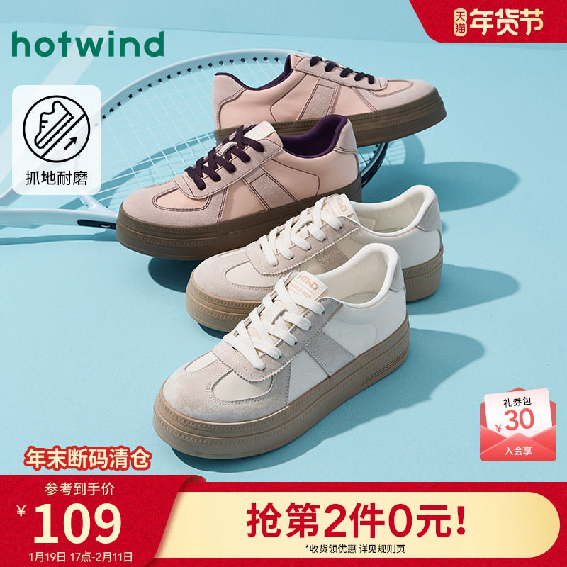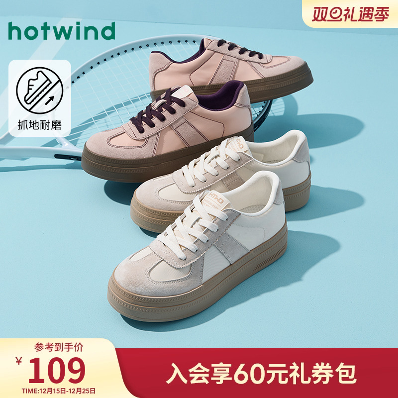 热风松糕底板鞋女鞋2025年冬季新款女士休闲学院风运动复古德训鞋