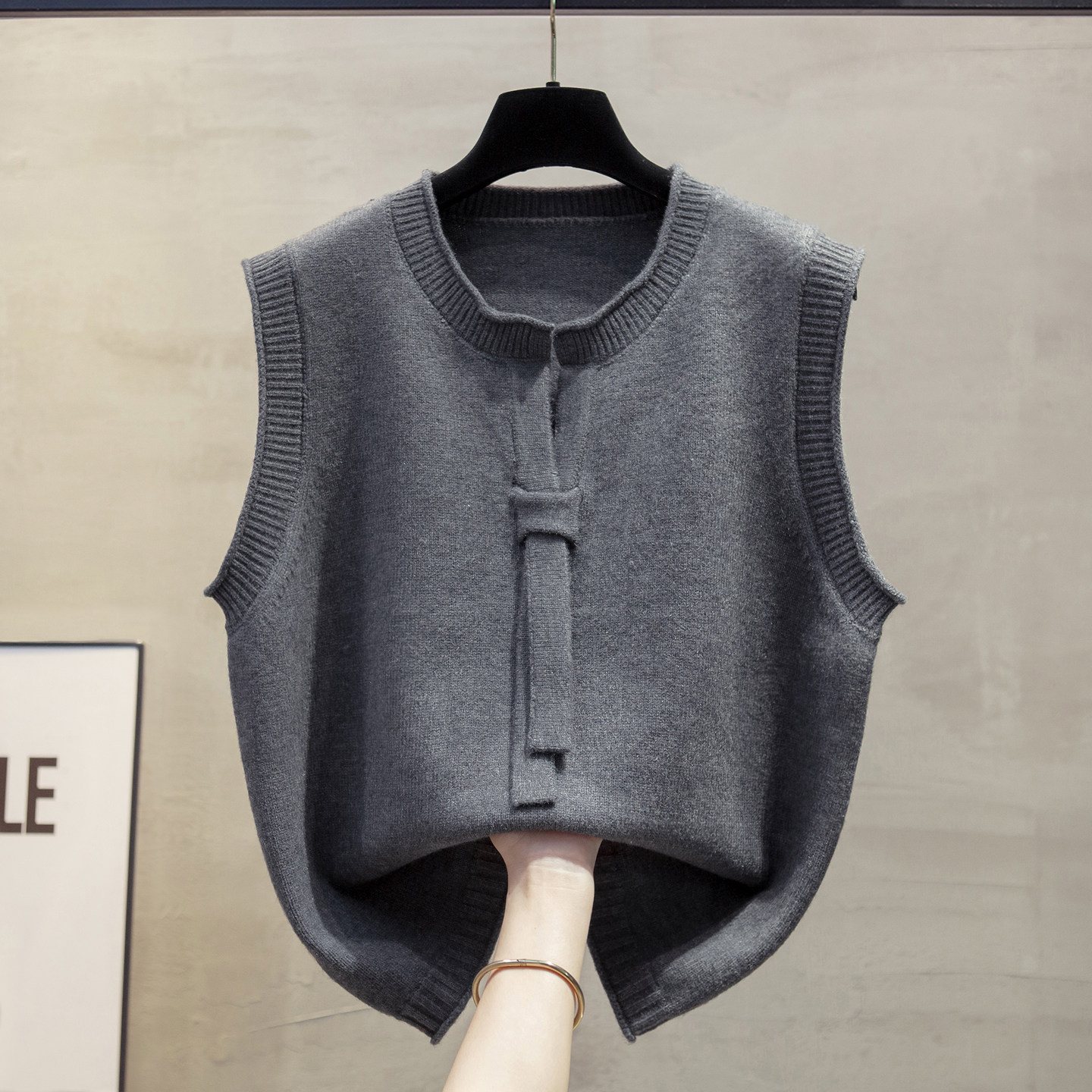 圆领飘带针织马甲背心女2025秋冬新款宽松外穿马夹叠穿毛衣坎肩潮