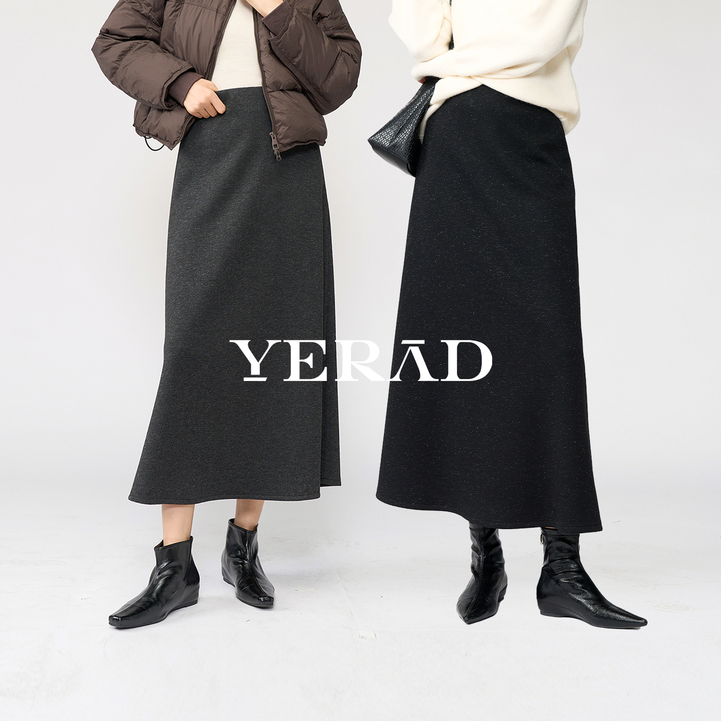 娅丽达松紧腰醋酸毛呢半身裙女秋冬2025新款黑色裙子开叉直筒长裙
