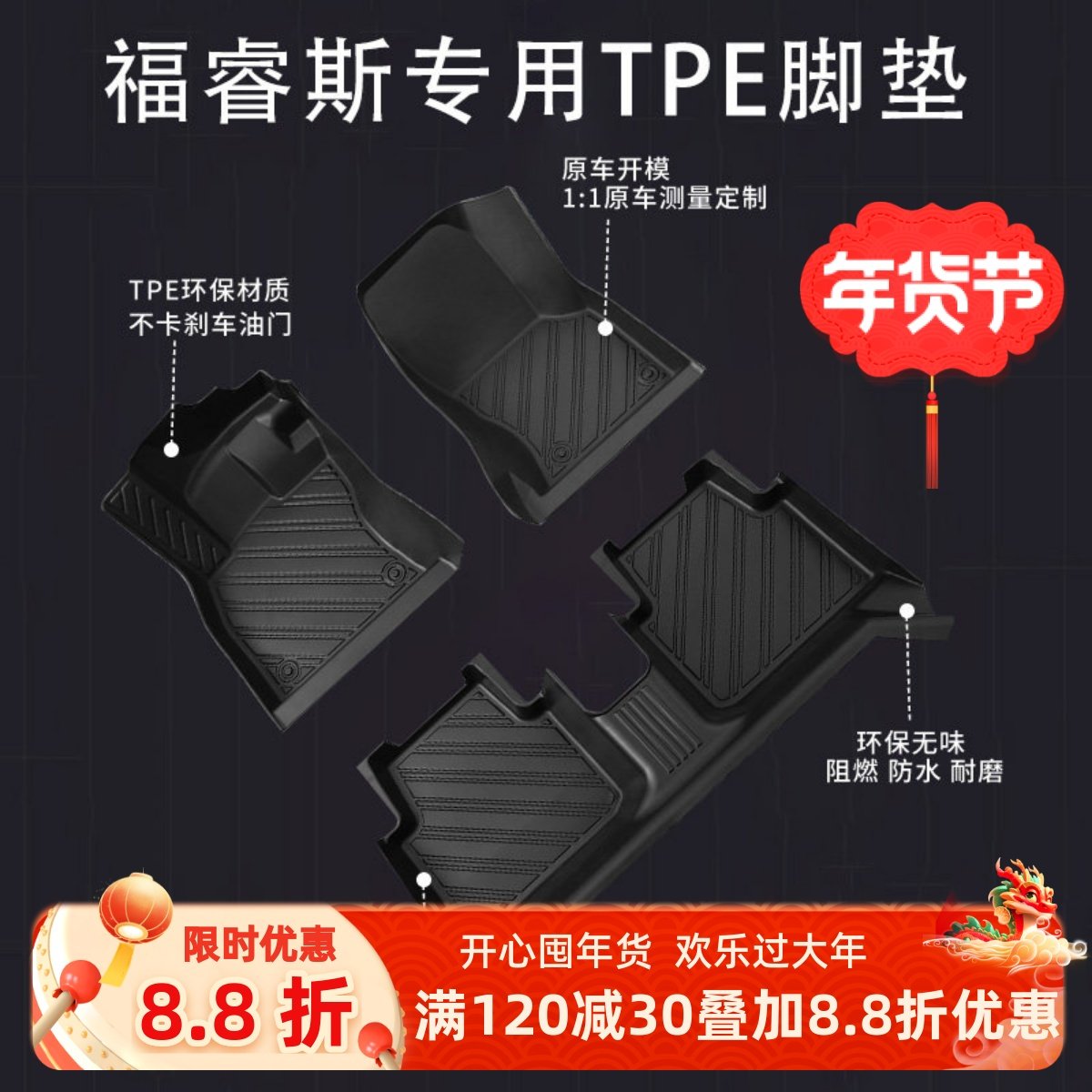 适用福特全新老款福克斯经典福睿斯翼虎翼博锐际锐界TPE汽车脚垫