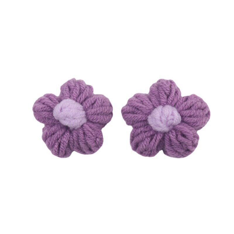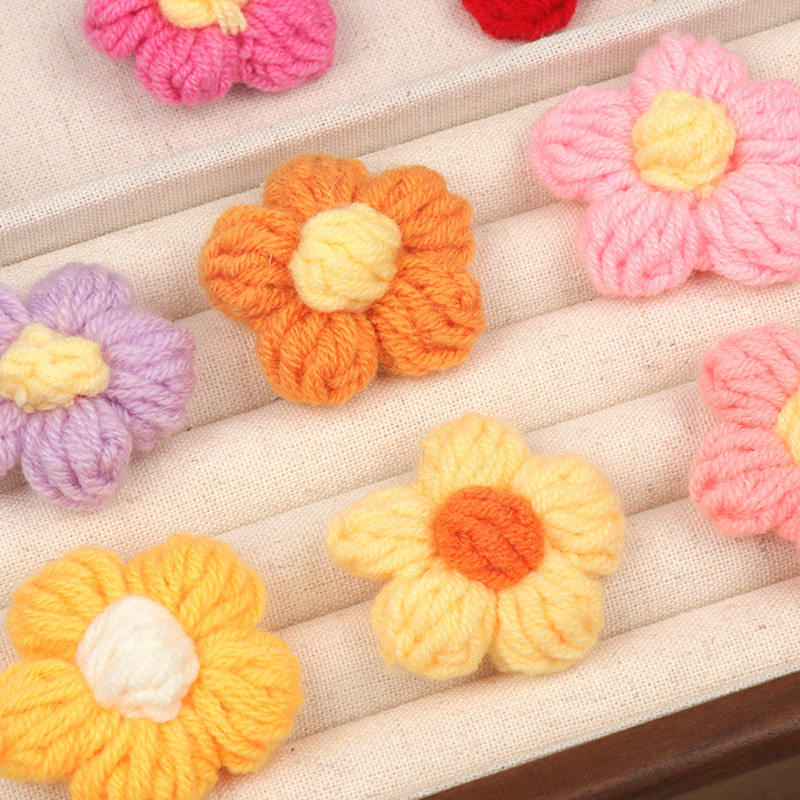 手工毛线钩织彩色泡芙花DIY小花配饰成品编织配件花朵手工编织