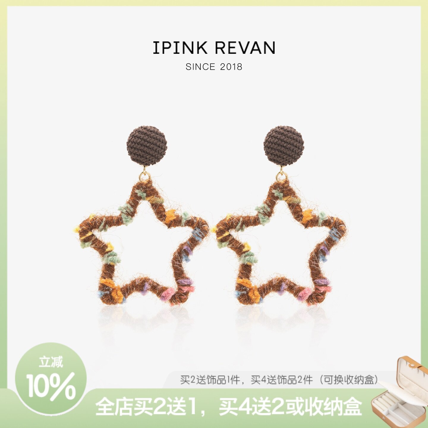 IPINK甜美星星毛线编织耳环女彩色五角星简约潮牌耳饰三角耳夹