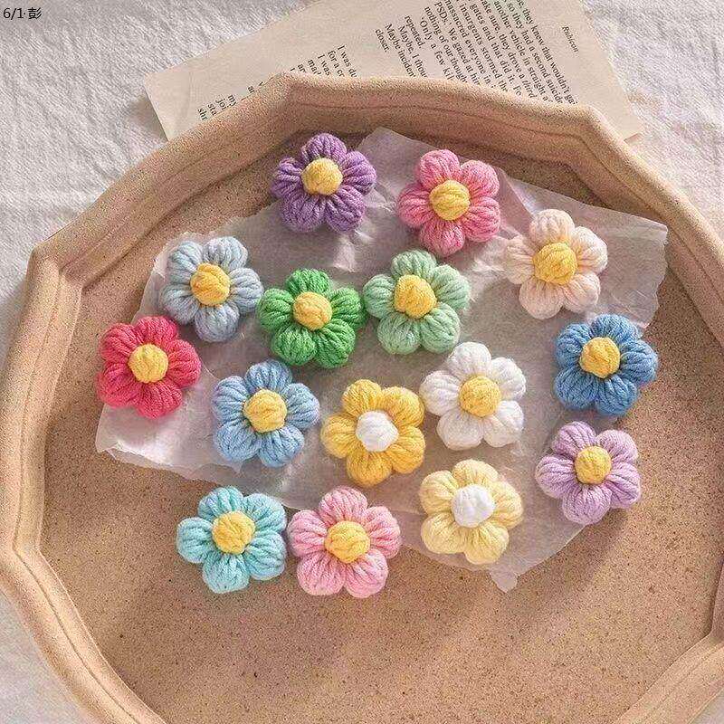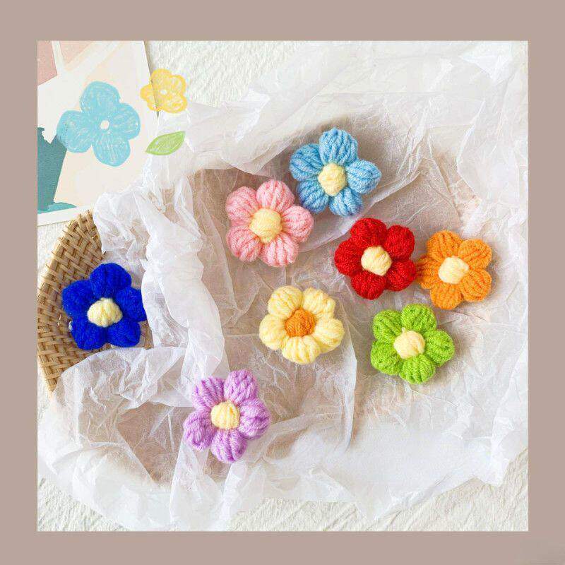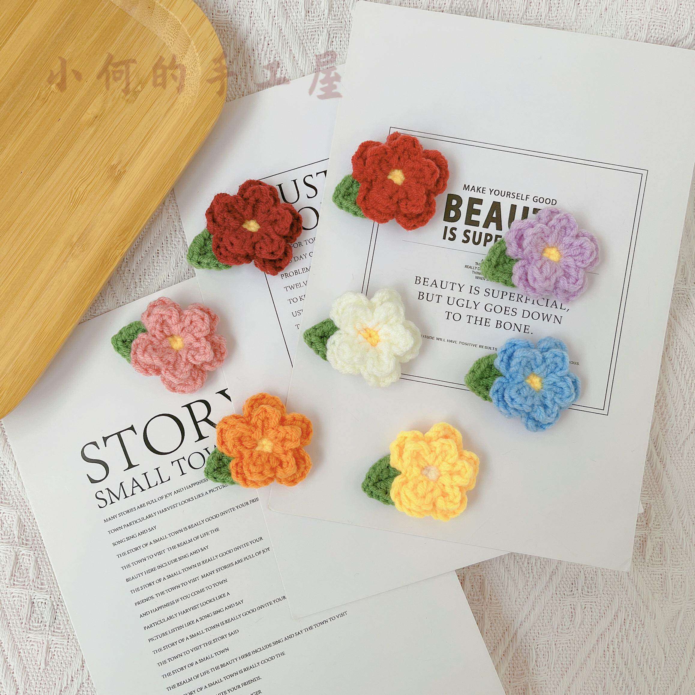 手工编织毛线花朵DIY钩织彩色小花少女心装饰配件手工制作配饰