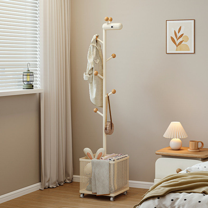 挂衣架落地卧室转角小型立式衣服置物架脏衣篓一体移动儿童衣帽架