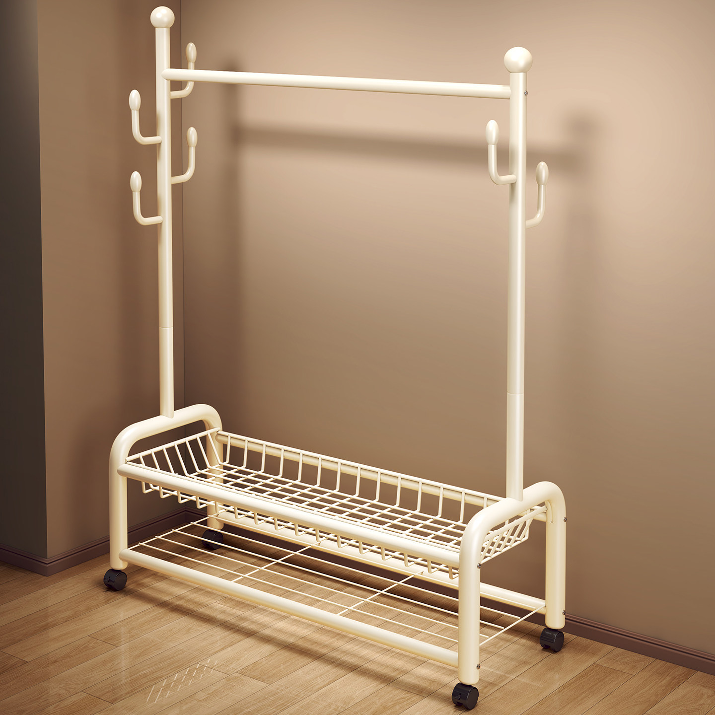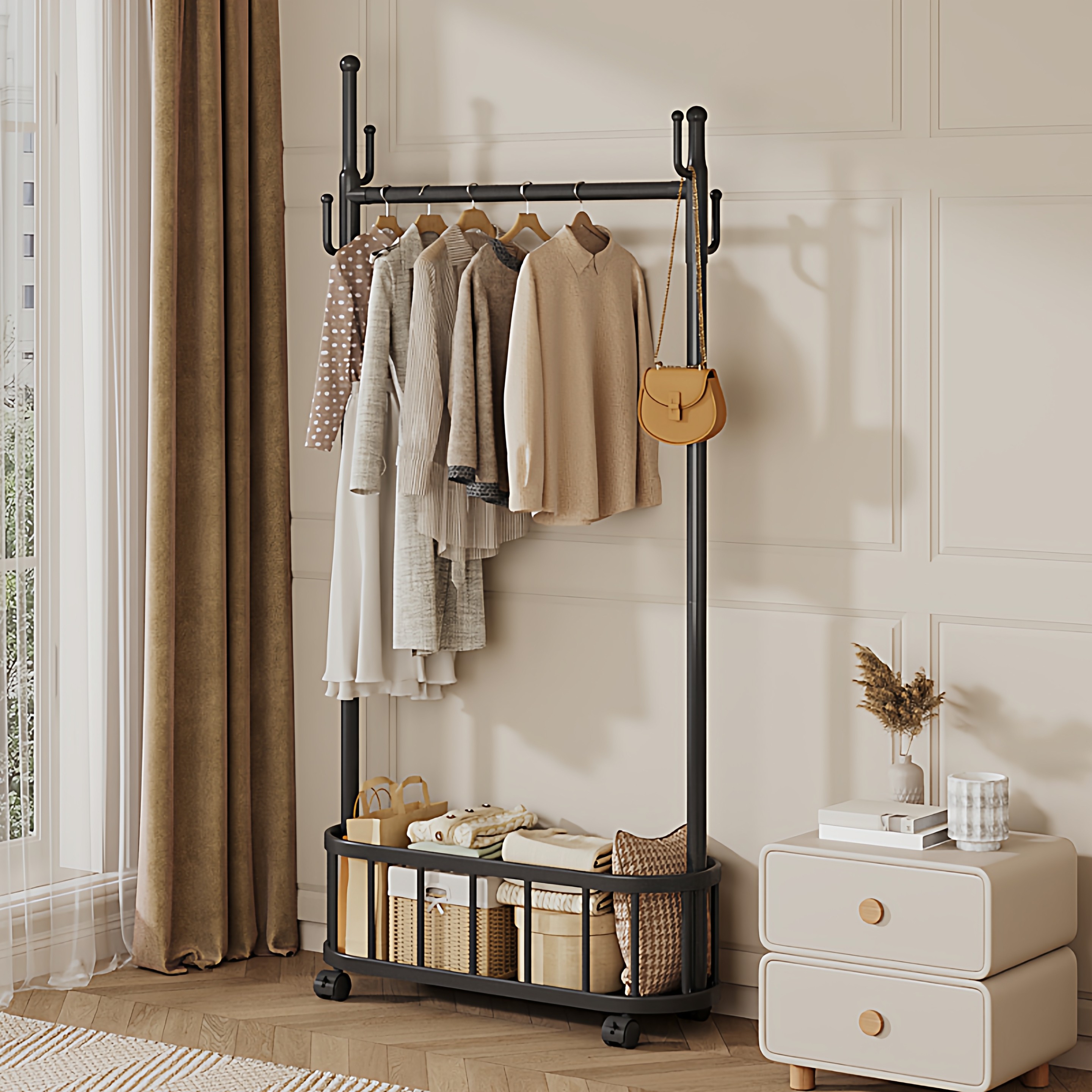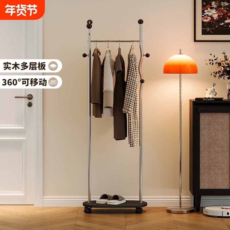 轻奢奶油挂衣架落地卧室家用房间客厅晚上放衣服带轮可移动衣帽架
