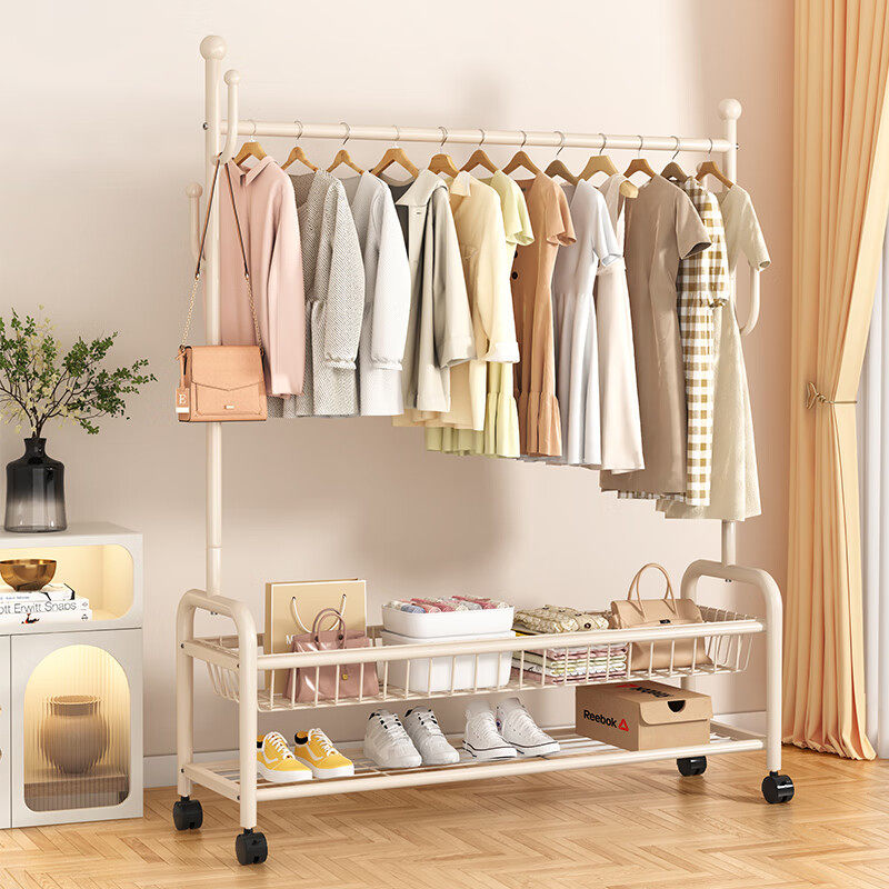 挂衣架落地卧室家用可移动双杆置物衣帽架简易收纳架立式晾衣架子