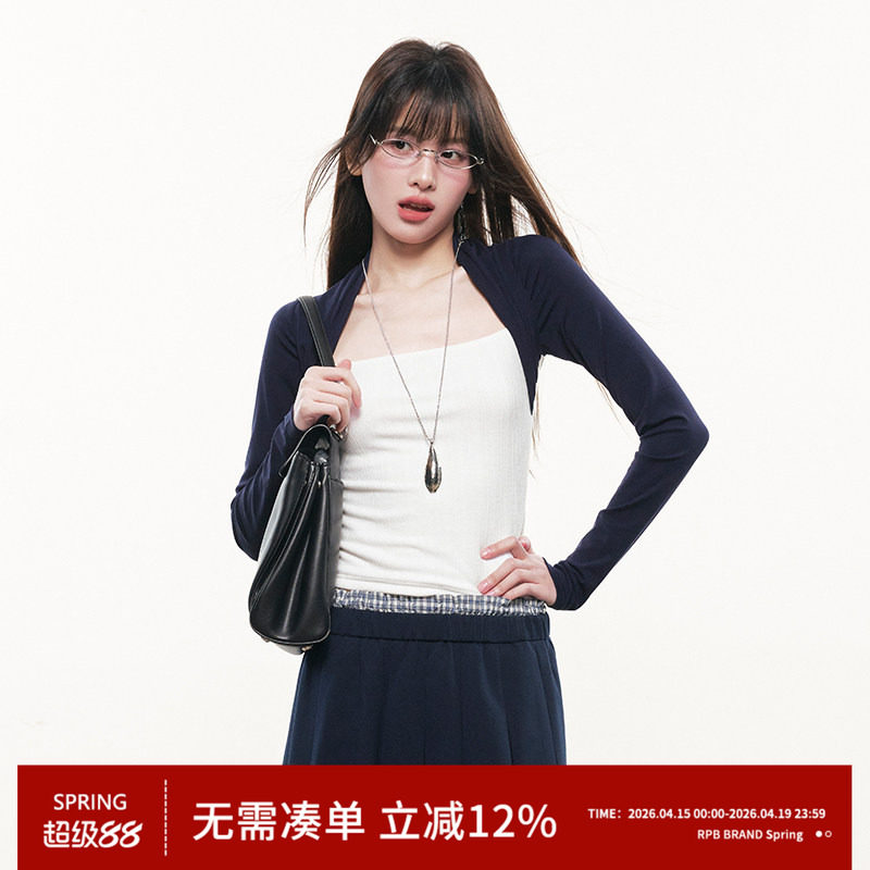 RPB BRAND拼接撞色设计感修身长袖T恤披肩抹胸打底衫港风复古上衣