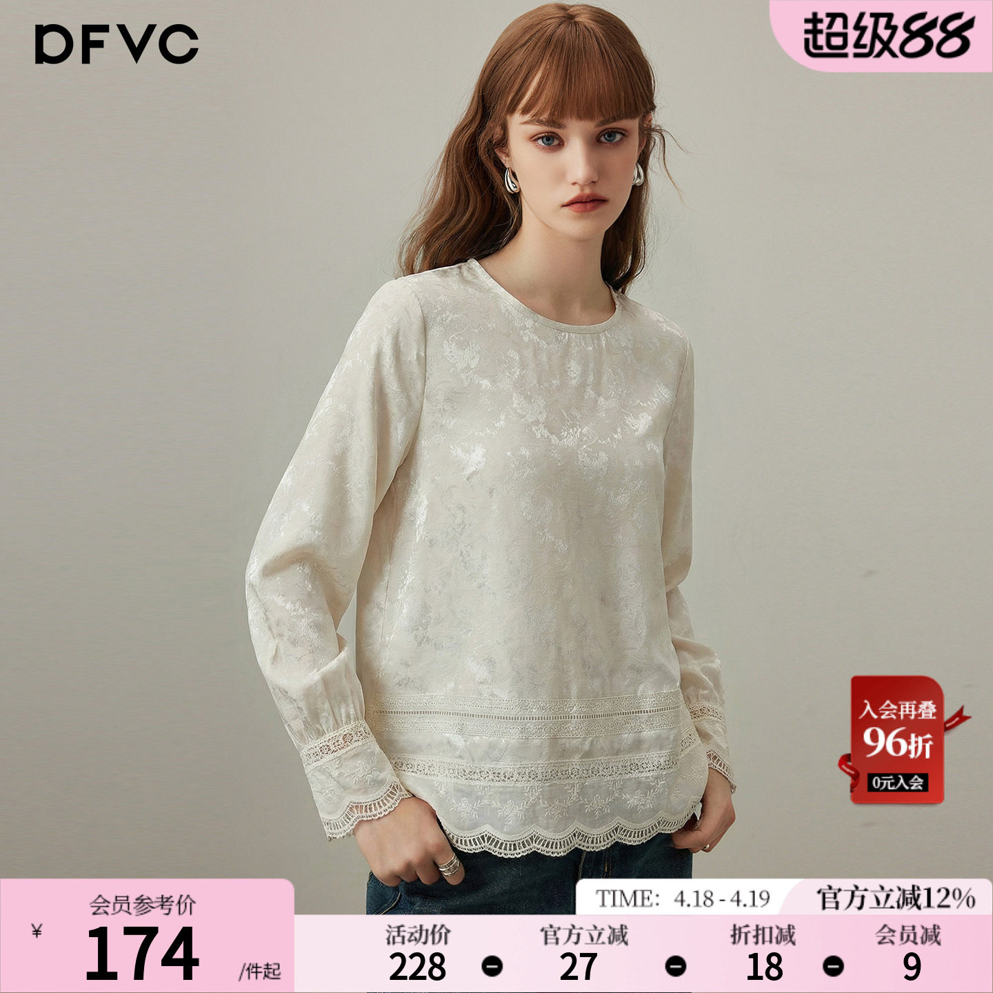 dfvc天丝亚麻复古提花长袖衬衫女2026年春季新款圆领内搭打底衫薄