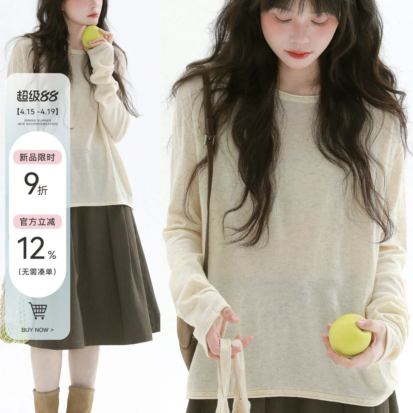 稀有RARE 圆领打底衫文艺复古慵懒长袖针织衫宽松百搭气质上衣女