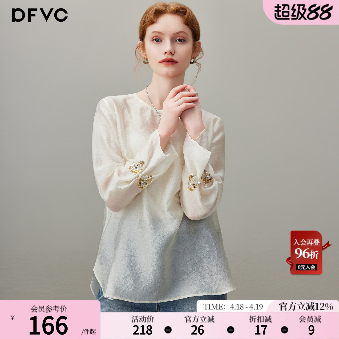 dfvc人丝复古国风轻薄长袖衬衫女2026年春季新款蝴蝶钉珠打底上衣