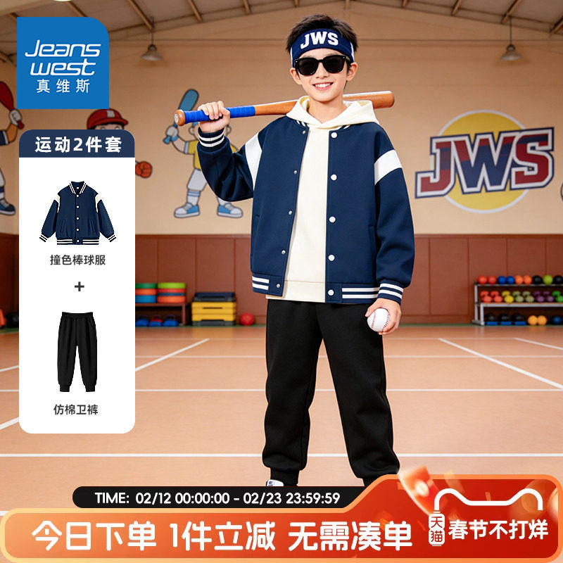 真维斯童装男童套装2026新款春秋款棒球服外套儿童帅气衣服中大童