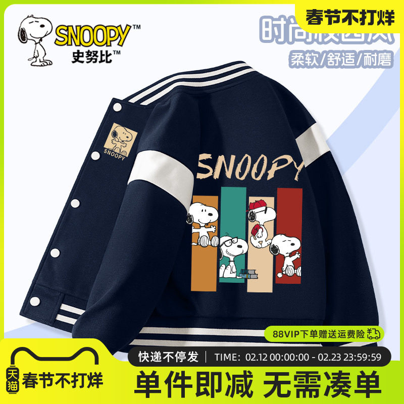 史努比男童外套春秋款男大童棒球服早春衣服儿童春装男孩休闲上衣