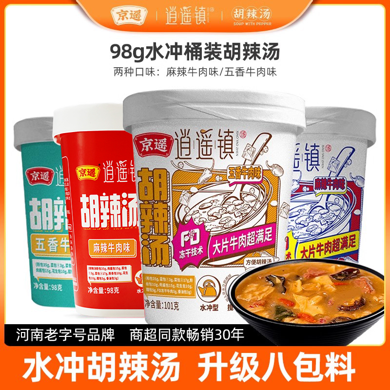京遥水冲胡辣汤免煮冲泡即食方便速食汤料河南逍遥镇101g桶装整箱