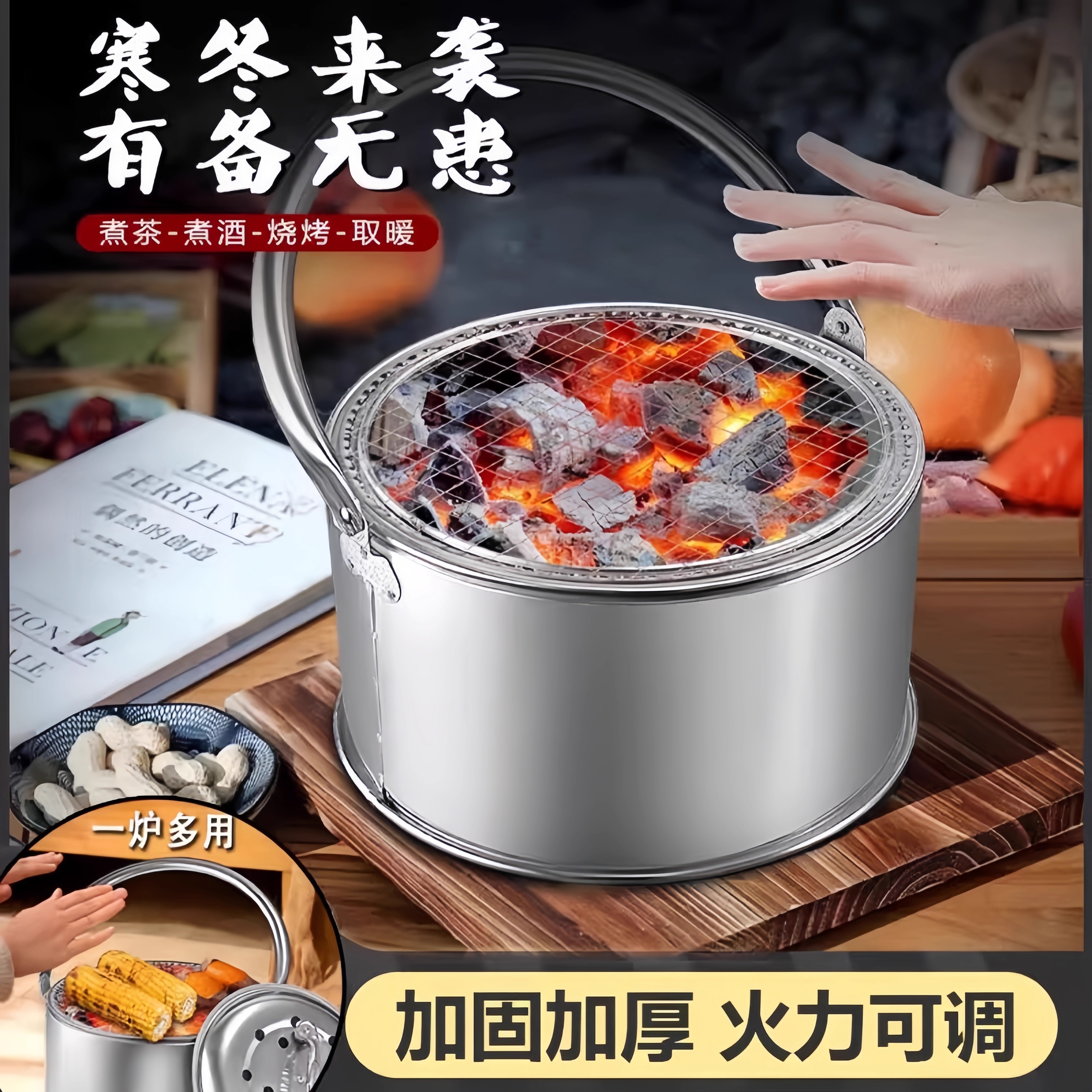 家用博琛多功能烤火盆烧烤炉户外炉煮茶火炉加厚取暖器乔迁冬天围