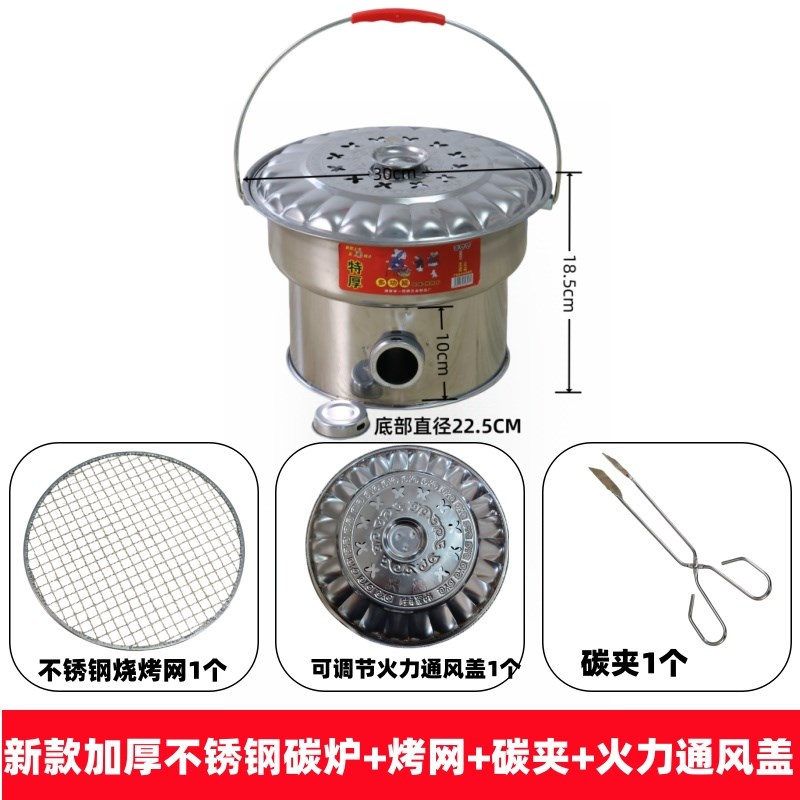 不锈钢烤火炉木炭炉取暖炉碳火盆烤火盆烧烤炉农村手提老式烧火盆