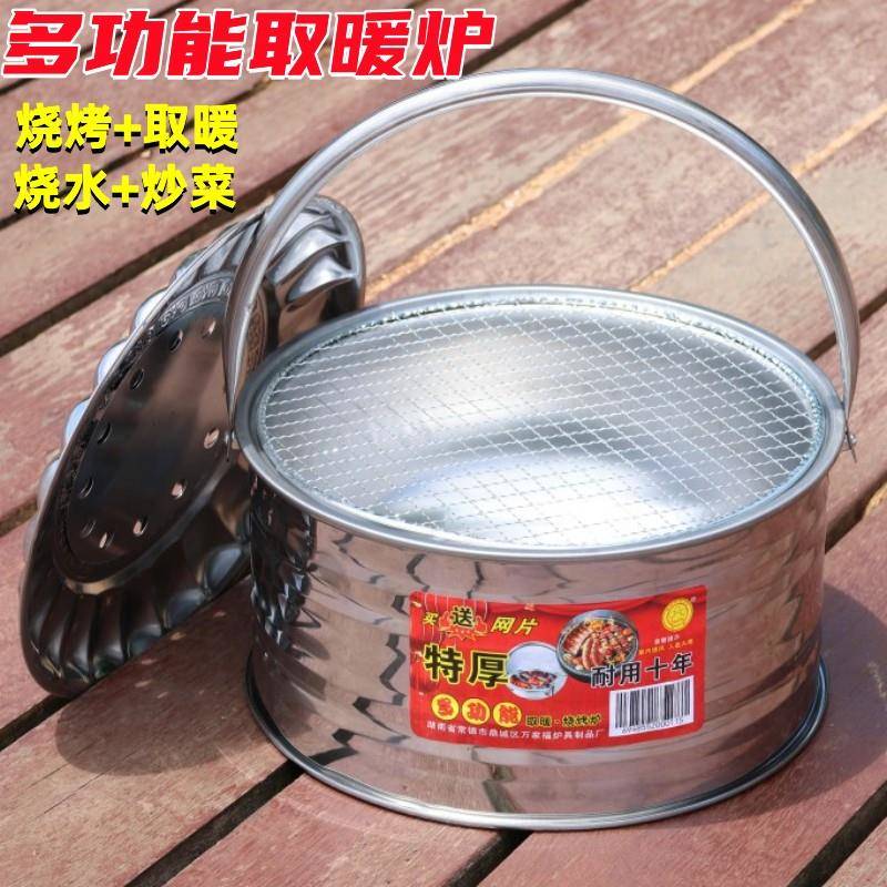 不锈钢烤火d炉木炭炉取暖炉碳火盆烤火盆烧烤炉农村手提老式烧火
