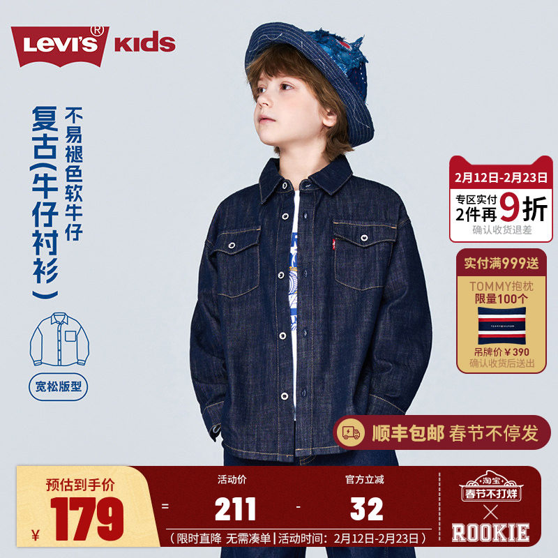 李维斯童装男童牛仔衬衫2026新款衣服春秋季长袖上衣儿童纯棉衬衣