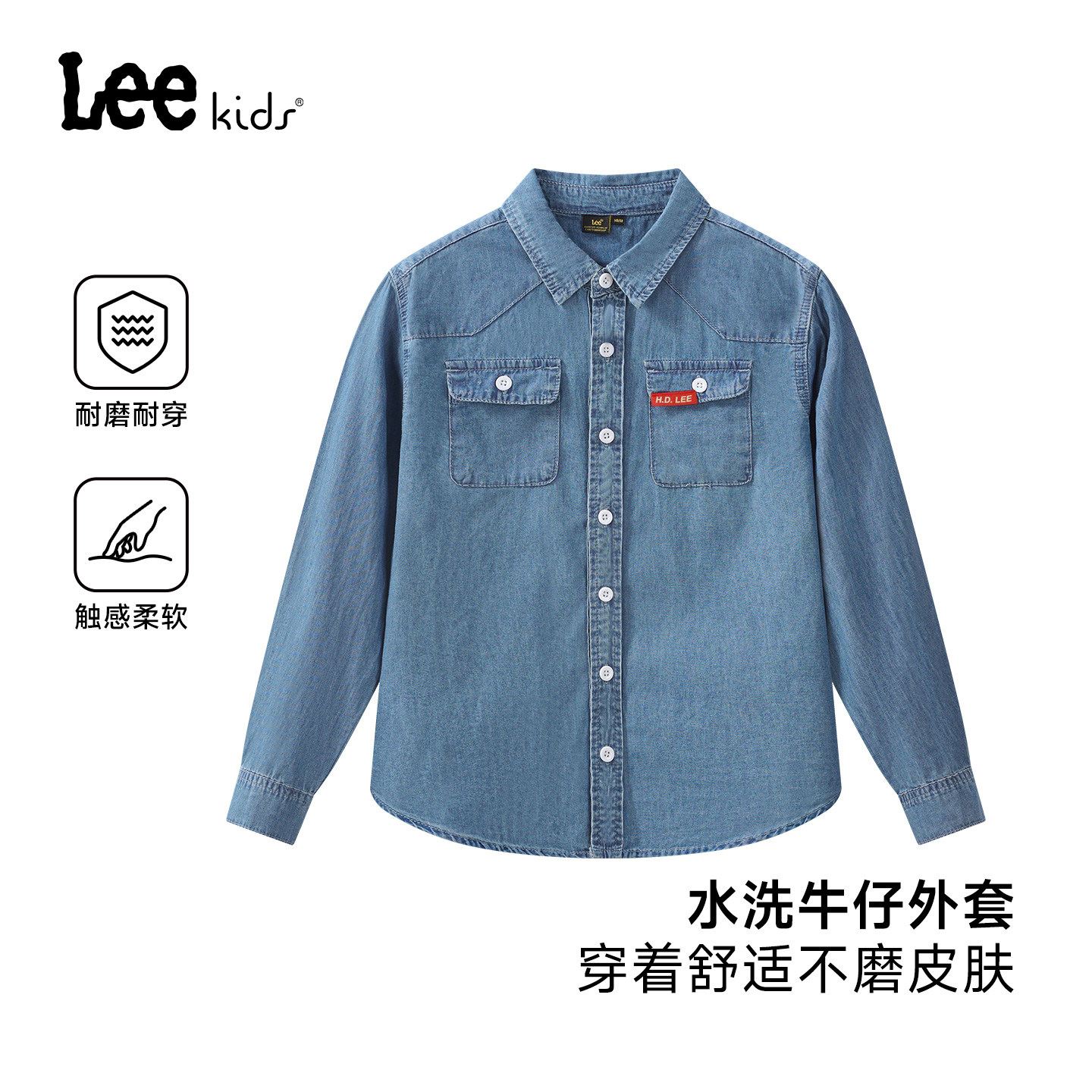 Lee kids儿童翻领牛仔衬衫春季新款宽松日常休闲男女童装长袖上衣