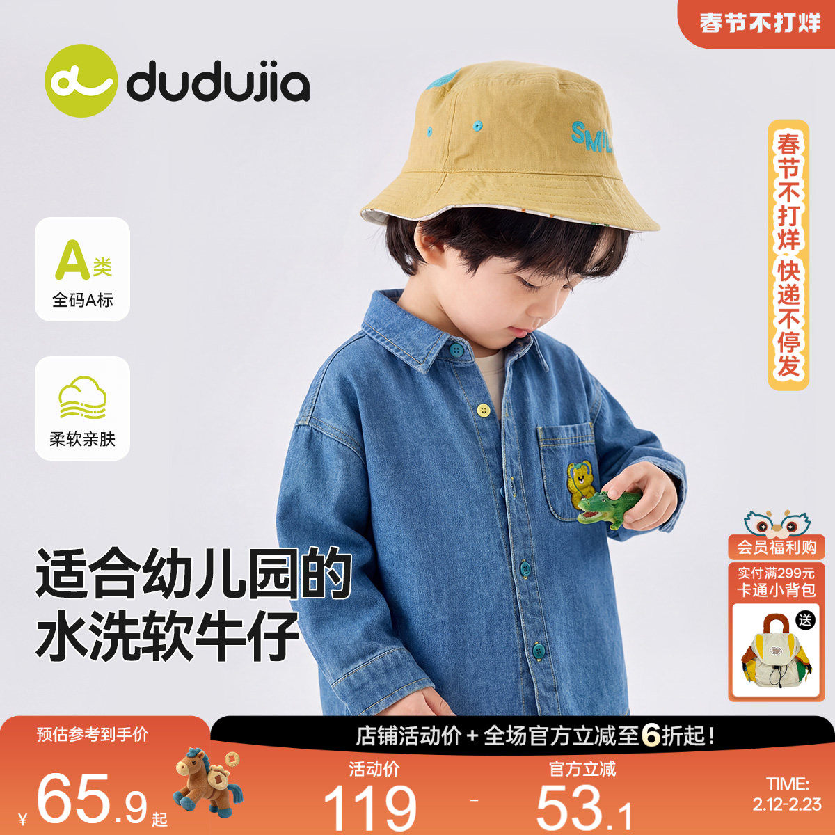 【软牛仔】嘟嘟家男童衬衫春季儿童衬衣外套春装新款宝宝长袖上衣