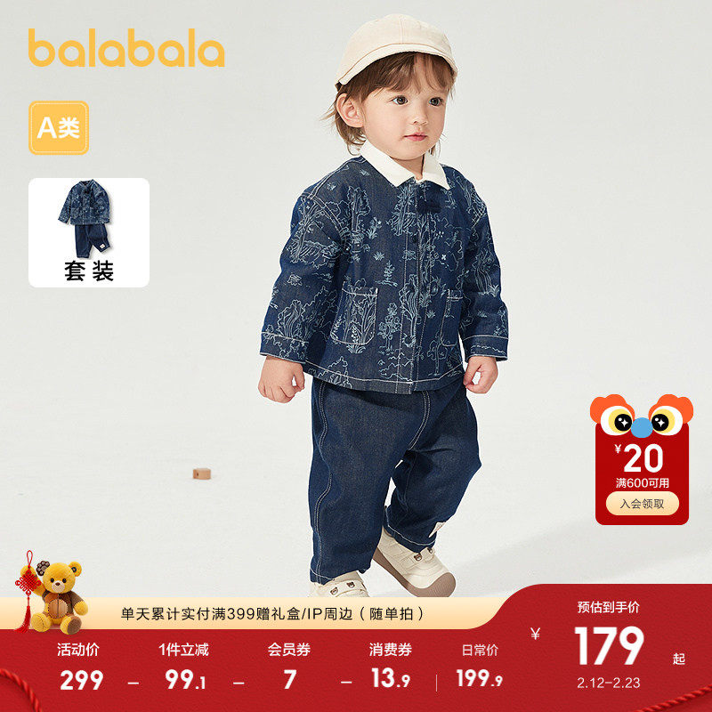 巴拉巴拉童装宝宝长袖套装婴儿男童牛仔服两件套小立领国风复古潮