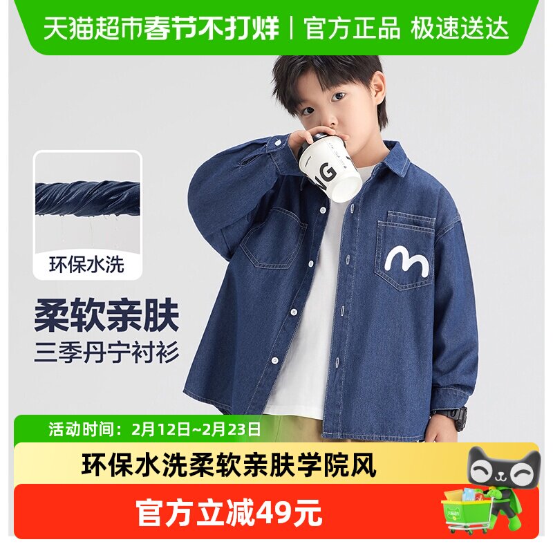 巴拉巴拉童装男童长袖衬衫儿童上衣2025新考春秋装纯棉牛仔时尚潮