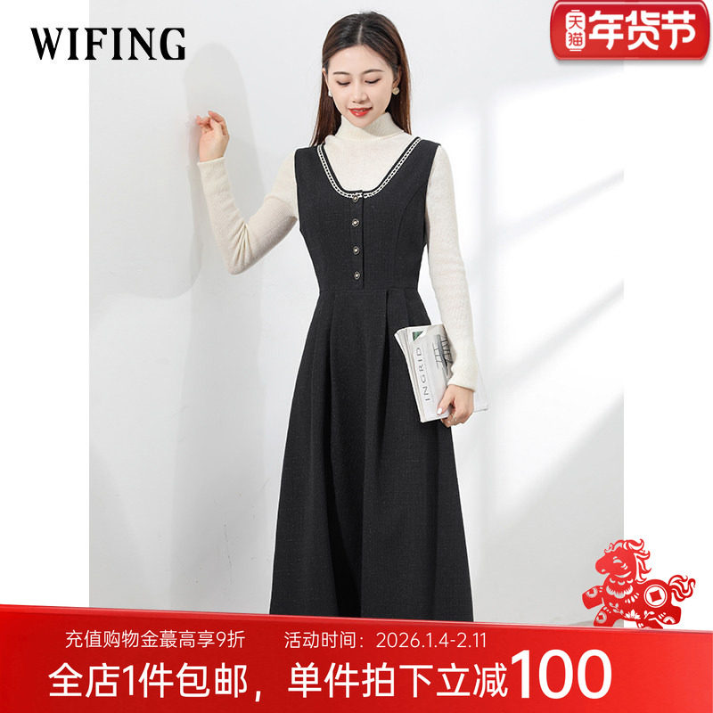 - 长款毛呢连衣裙