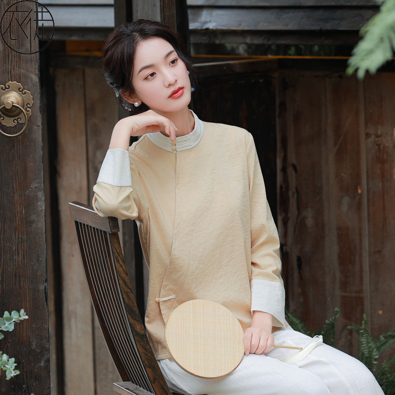 棉麻复古盘扣上衣女新款新中式文艺宽松禅意茶服原创衬衫女式外套