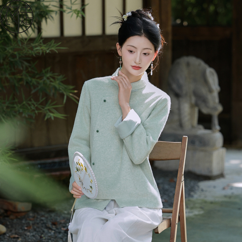 汉服女禅意茶服中国风新中式秋冬毛呢外套改良旗袍外搭开衫茶人服